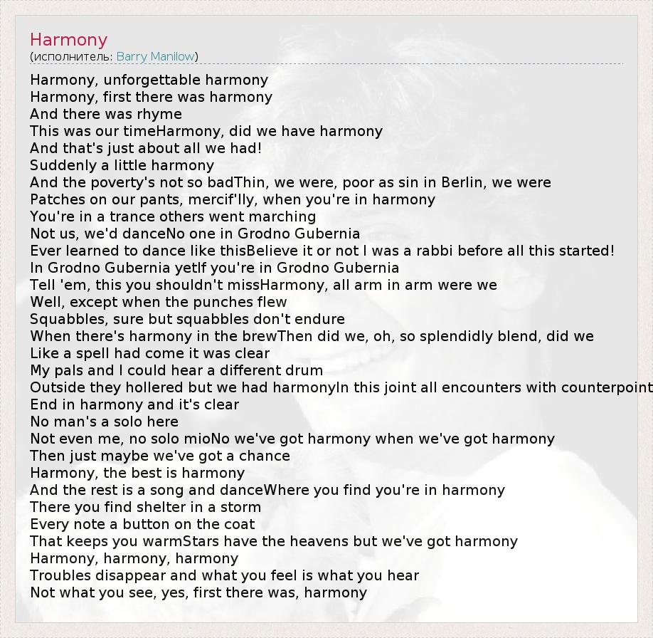 А как ты думаешь, о чем песня "Harmony" ?