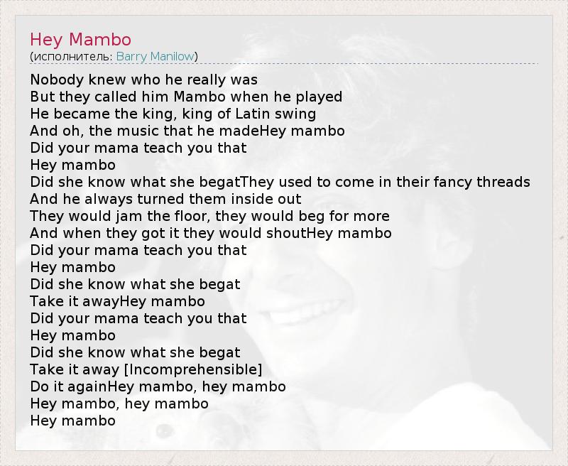 А как ты думаешь, о чем песня "Hey Mambo" ?