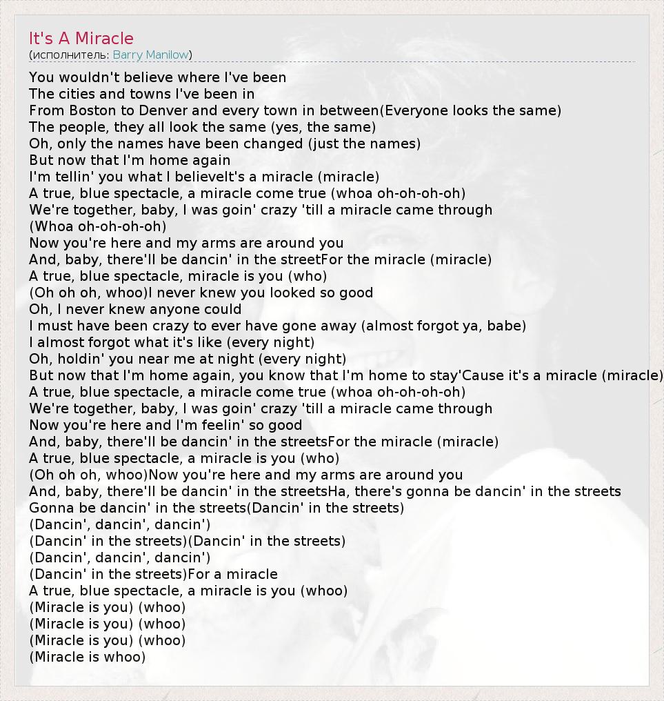 А как ты думаешь, о чем песня "It's A Miracle" ?