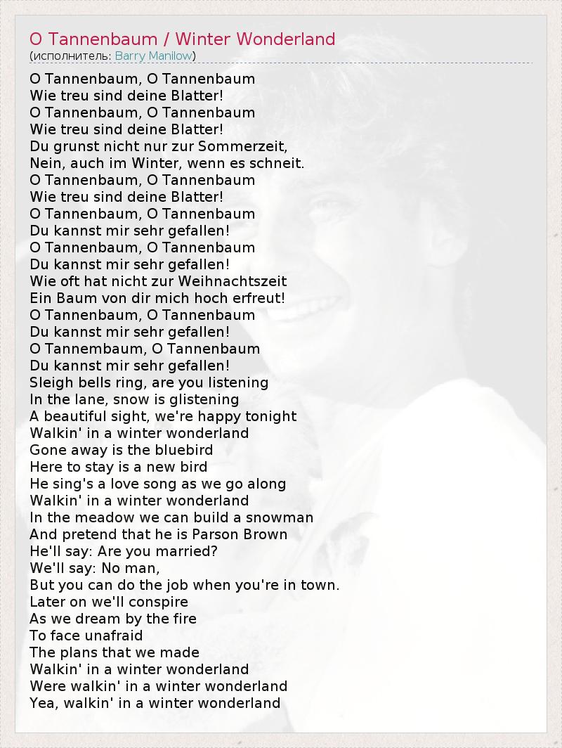 ГлавнаяИсполнителиBarry ManilowO Tannenbaum / Winter Wonderland