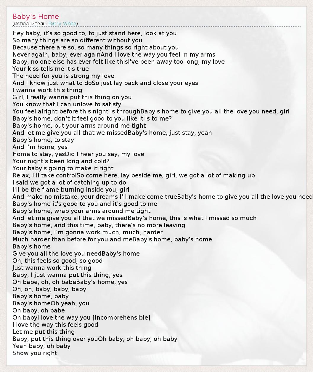 А как ты думаешь, о чем песня "Baby's Home" ?