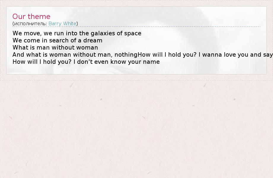 Это интересно:Бэрри Уайт родился в 1944 году в городе Галвестон (штат Техас, США). Начиналась его взрослая жизнь весьма оригинально: в возрасте 15 лет он загремел на четыре месяца в калифорнийскую тюрьму за кражу автомобильных шин на 30 000 долларов. В то же время, Бэрри рано начал проявлять интерес к музыке. Самостоятельно научился игре на фортепиано, а также пел в детском церковном хоре. В школе он сформировал... продолжение