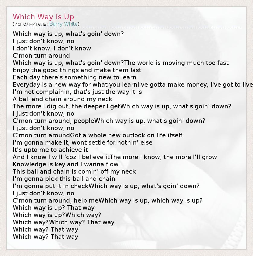 А как ты думаешь, о чем песня "Which Way Is Up" ?