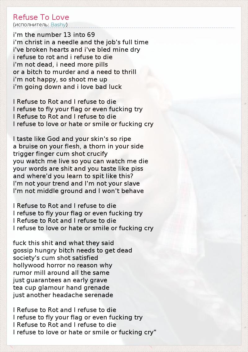 А как ты думаешь, о чем песня "Refuse To Love" ?