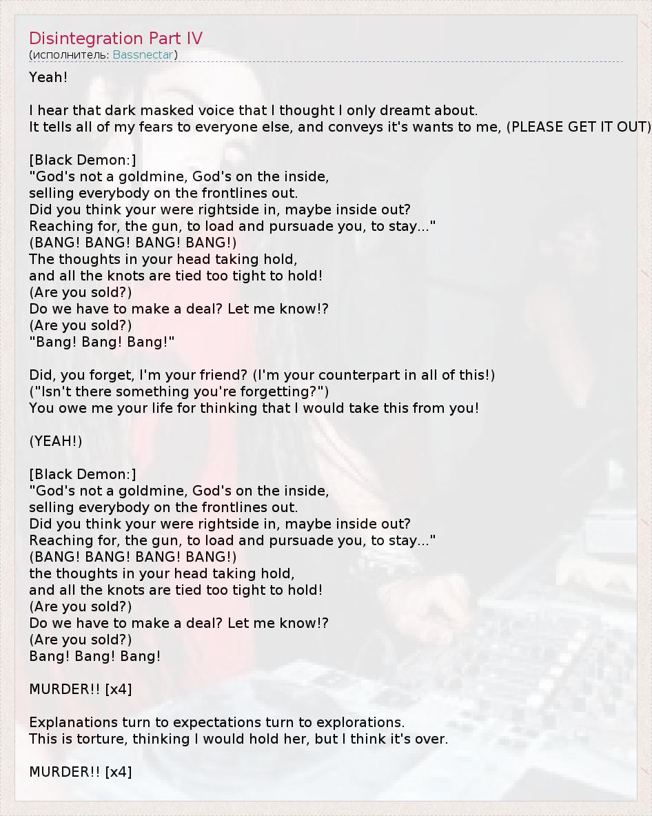 А как ты думаешь, о чем песня "Disintegration Part IV" ?