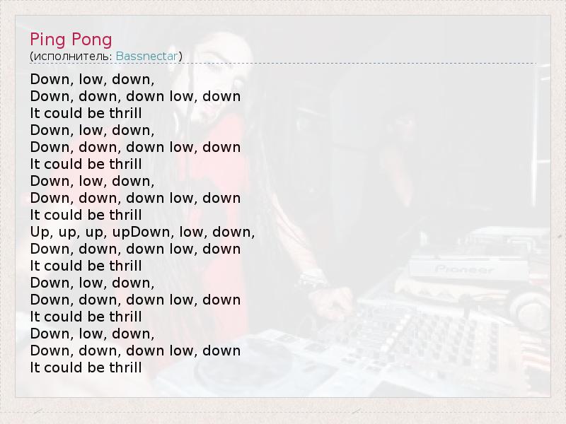 А как ты думаешь, о чем песня "Ping Pong" ?
