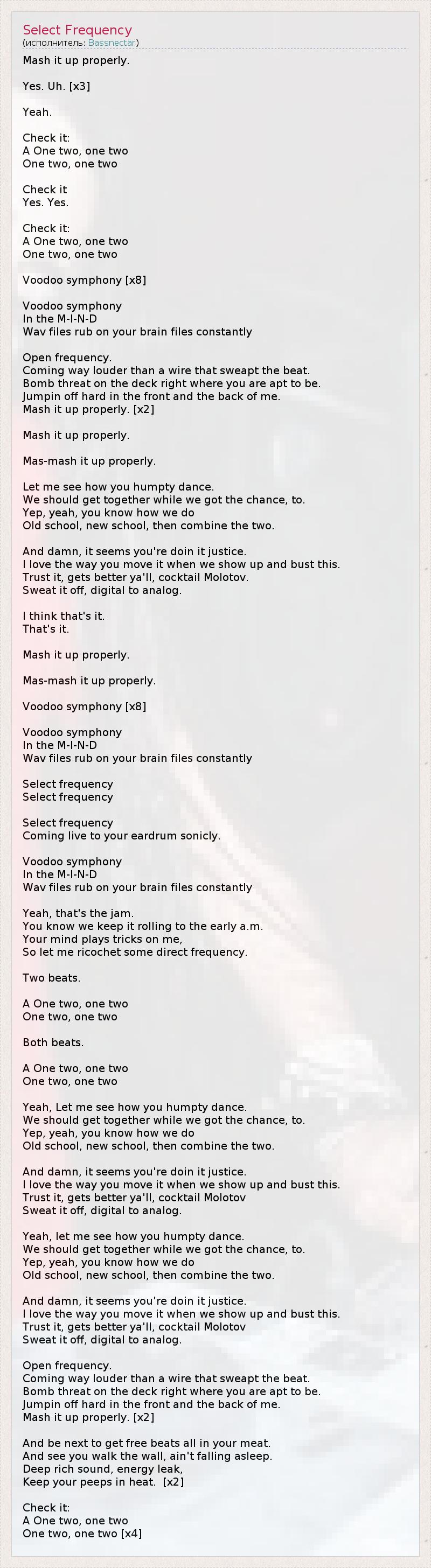 А как ты думаешь, о чем песня "Select Frequency" ?