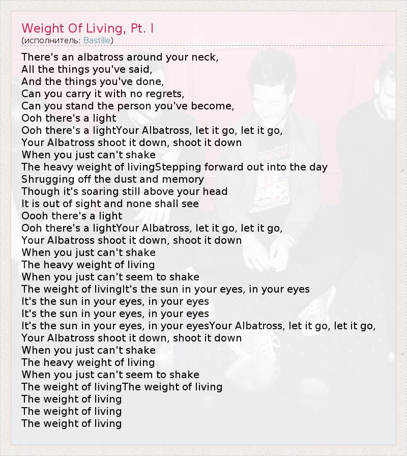 А как ты думаешь, о чем песня "Weight Of Living, Pt. I" ?