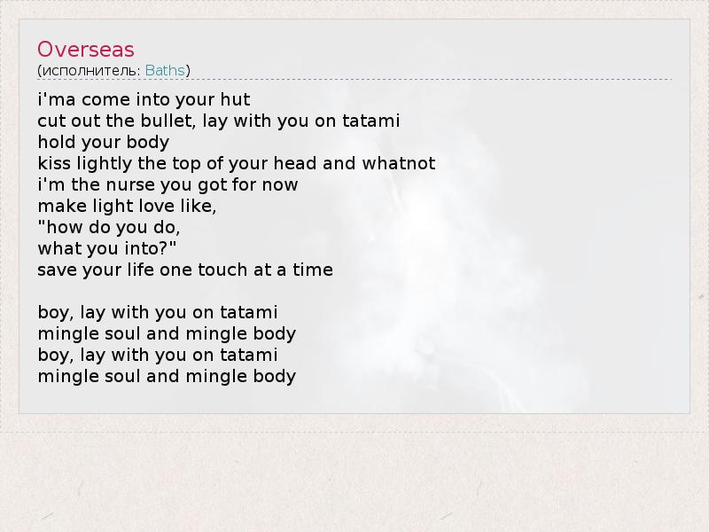 Это интересно:Will Wiesenfeld начал обучаться игре на пианино в возрасте четырех лет, чтобы, как он говорил, "конкурировать со своим братом". Правда, к двенадцати годам забросил это дело, но частые эксперименты над музыкой стимулировали его к созданию своих первых произведений. Проект Baths стартовал в 2007-м, и был назван в честь ванны, в которой музыкант искал вдохновение, будучи ещё... продолжение