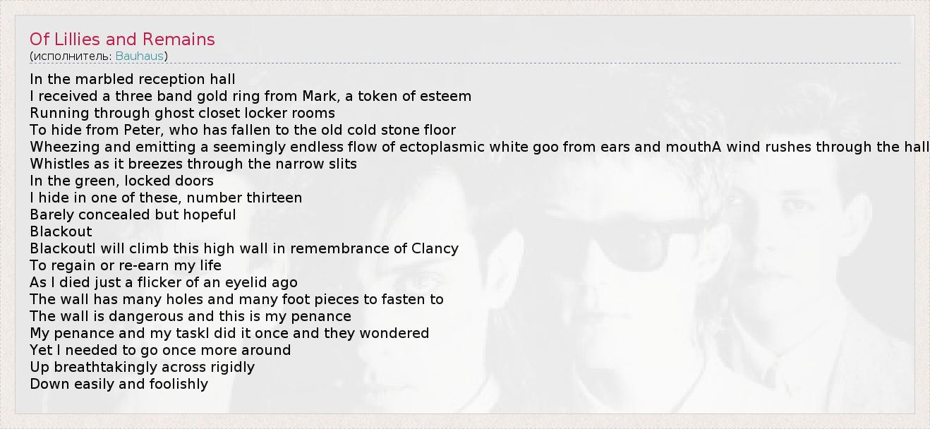 ГлавнаяИсполнителиBauhausOf Lillies and Remains