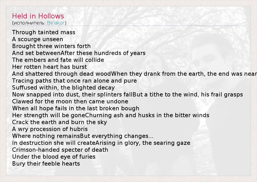 А как ты думаешь, о чем песня "Held in Hollows" ?