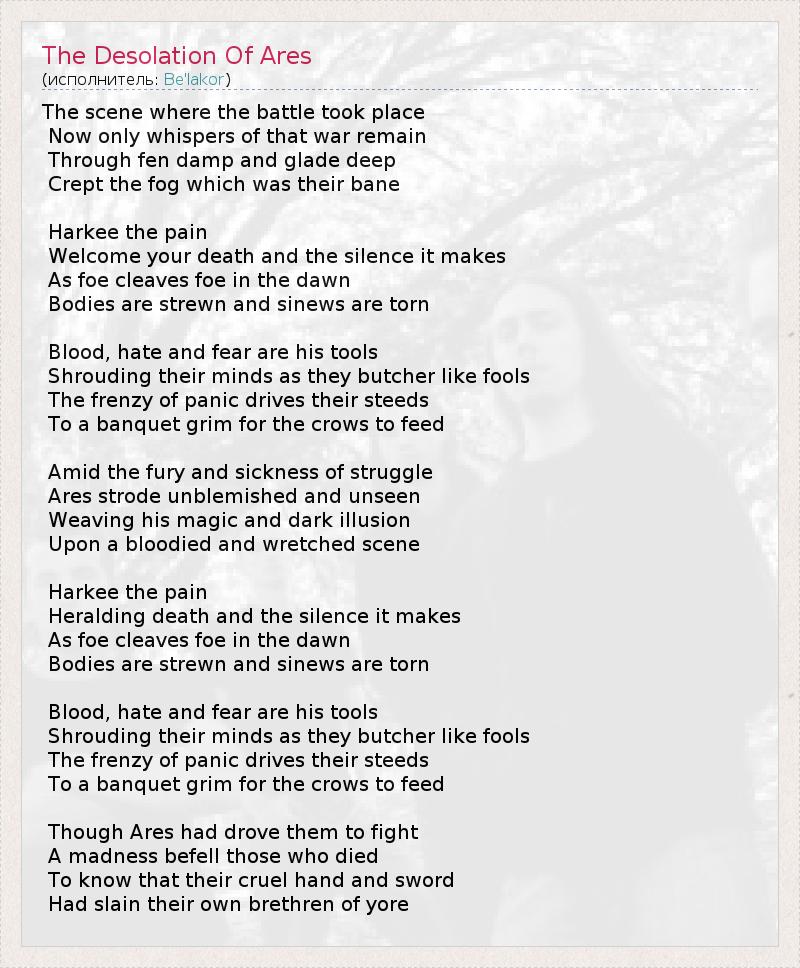 А как ты думаешь, о чем песня "The Desolation Of Ares" ?