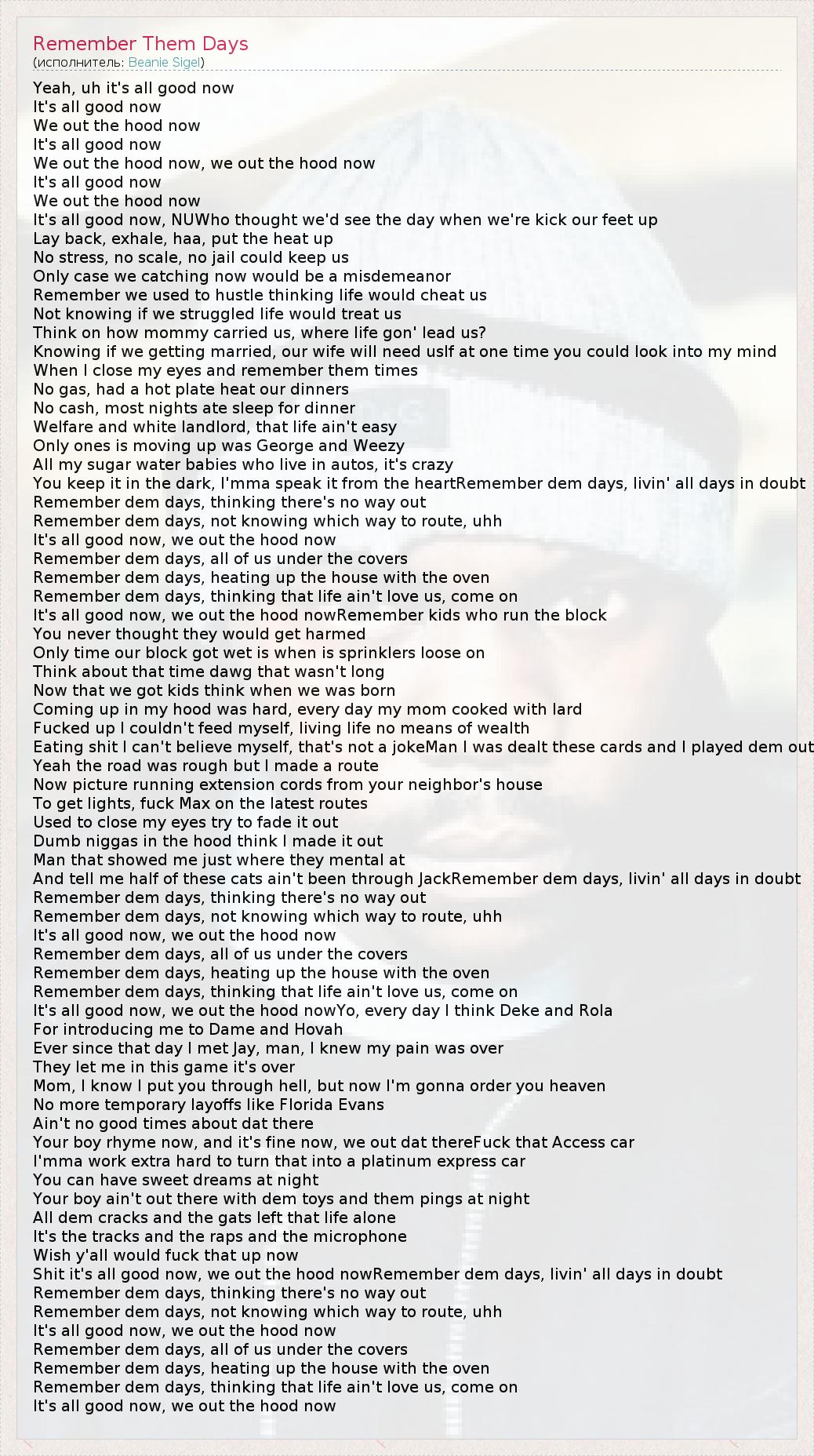 А как ты думаешь, о чем песня "Remember Them Days" ?