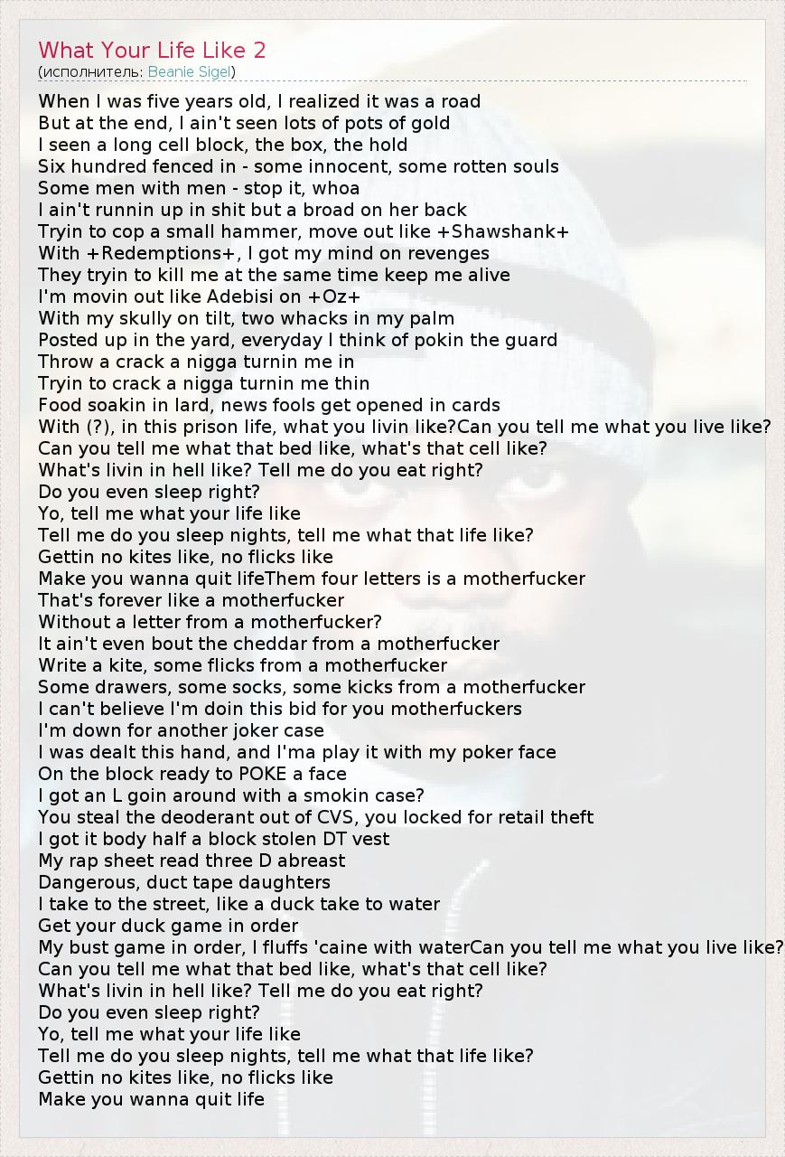А как ты думаешь, о чем песня "What Your Life Like 2" ?