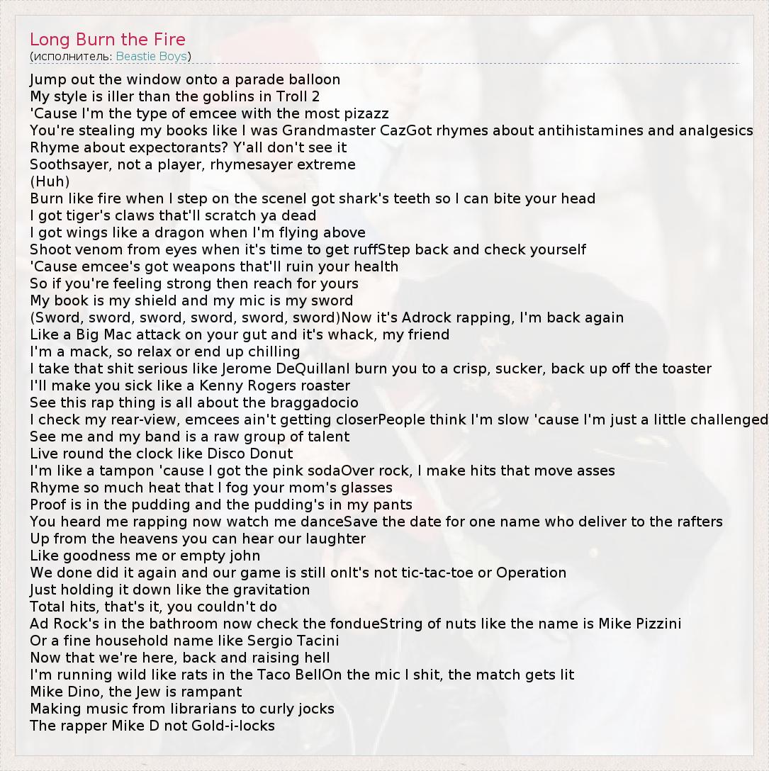 А как ты думаешь, о чем песня "Long Burn the Fire" ?