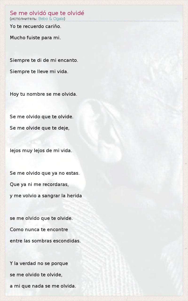 ГлавнаяИсполнителиBebo & CigalaSe me olvidó que te olvidé