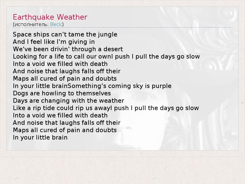 А как ты думаешь, о чем песня "Earthquake Weather" ?