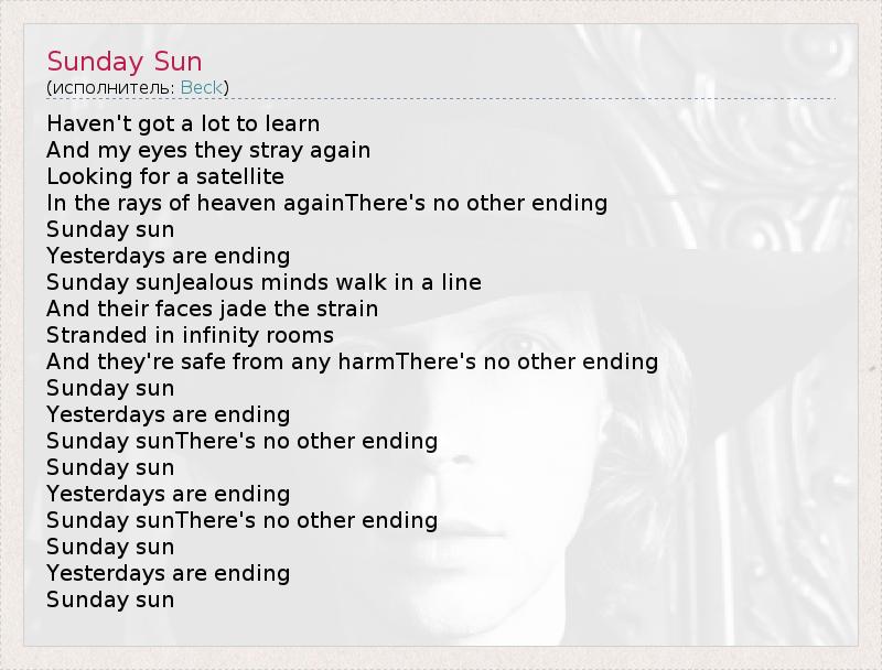 А как ты думаешь, о чем песня "Sunday Sun" ?
