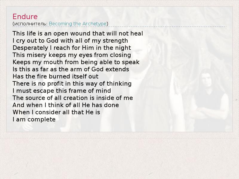 Это интересно:История группы Becoming The Archetype началась с 1999-го в Джорджии, когда она еще называлась The Remnant, и в ее составе играли Jason Wisdom, Wes Gaither, Jon Star и Brent "Duck" Duckett. В 2003-м The Remnant независимо выпустили свой одноименный альбом, в который вошло восемь песен общей продолжительностью в 28 минут. Члены группы были в прямом смысле утомлены музыкой в стиле хардкор, металкор и эмокор, поэтому их выбор пал на... продолжение