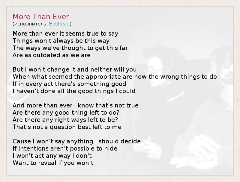 А как ты думаешь, о чем песня "More Than Ever" ?