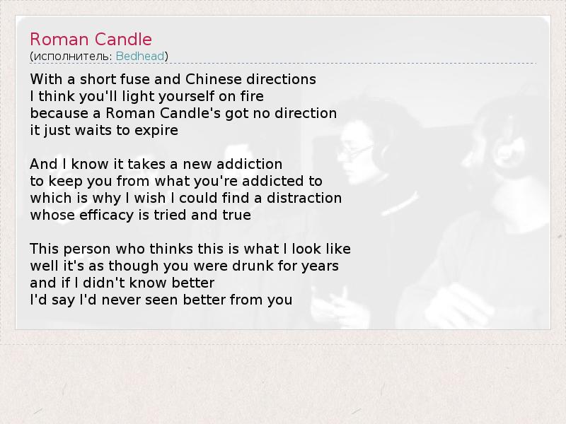 А как ты думаешь, о чем песня "Roman Candle" ?
