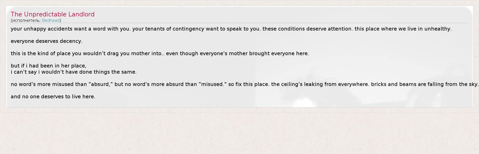 ГлавнаяИсполнителиBedheadThe Unpredictable Landlord