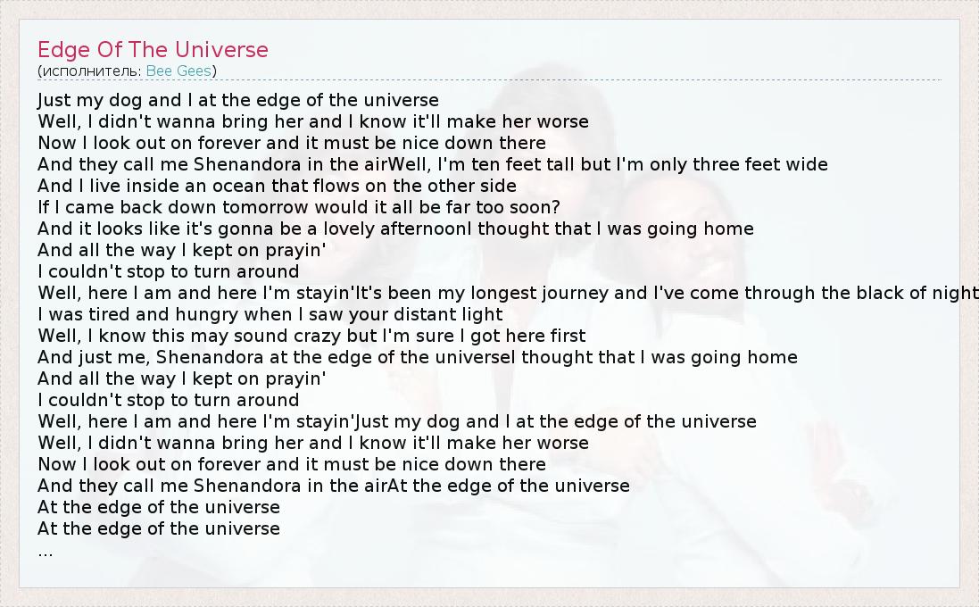 А как ты думаешь, о чем песня "Edge Of The Universe" ?
