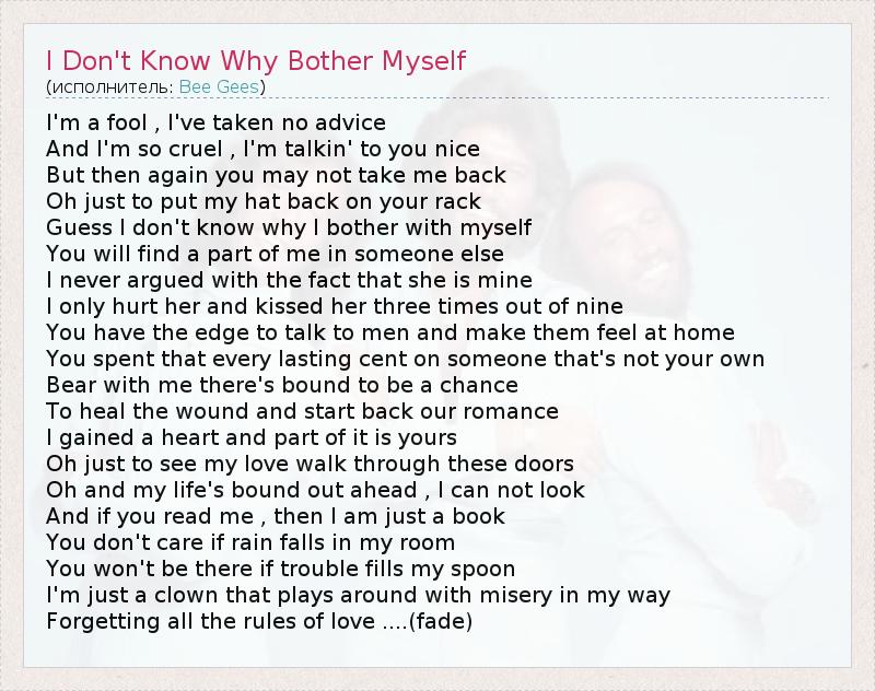 А как ты думаешь, о чем песня "I Don't Know Why Bother Myself" ?
