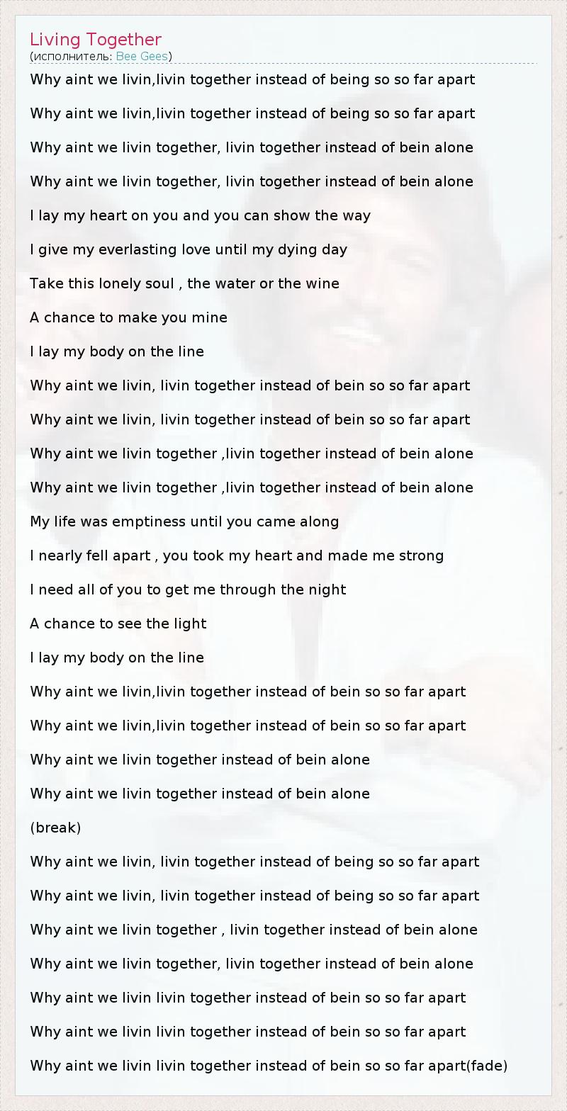 Why aint we livin livin together instead of bein so so far apart(fade)