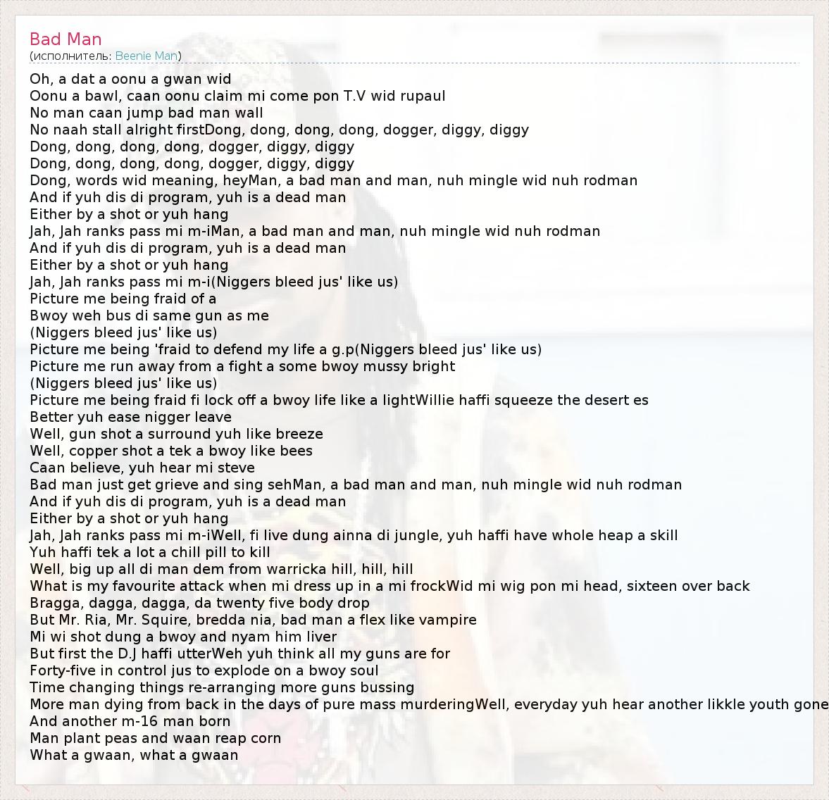 Dong, words wid meaning, heyMan, a bad man and man, nuh mingle wid nuh rodman
