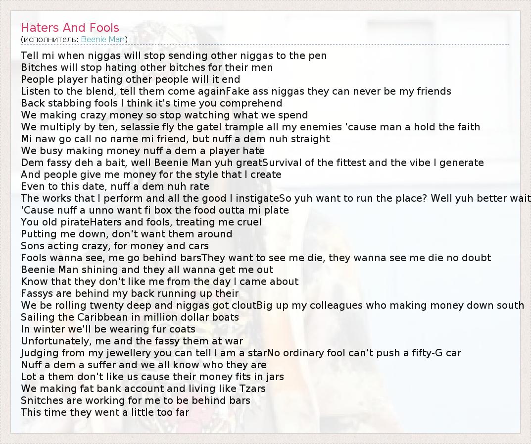 А как ты думаешь, о чем песня "Haters And Fools" ?