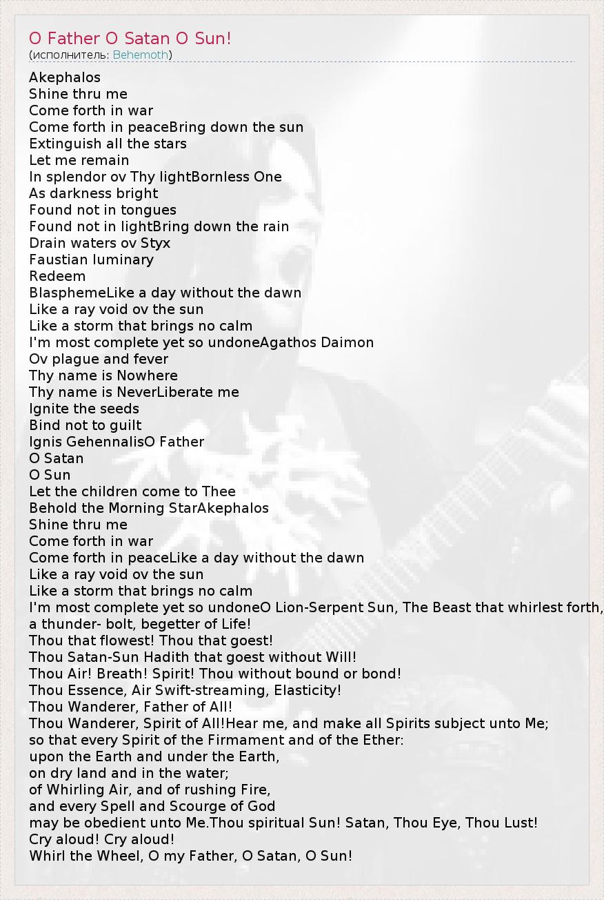 А как ты думаешь, о чем песня "O Father O Satan O Sun!" ?