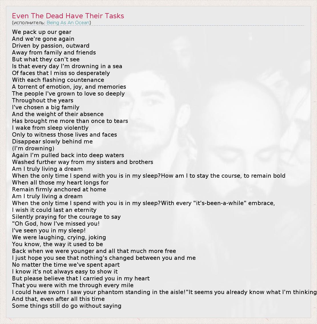 А как ты думаешь, о чем песня "Even The Dead Have Their Tasks" ?