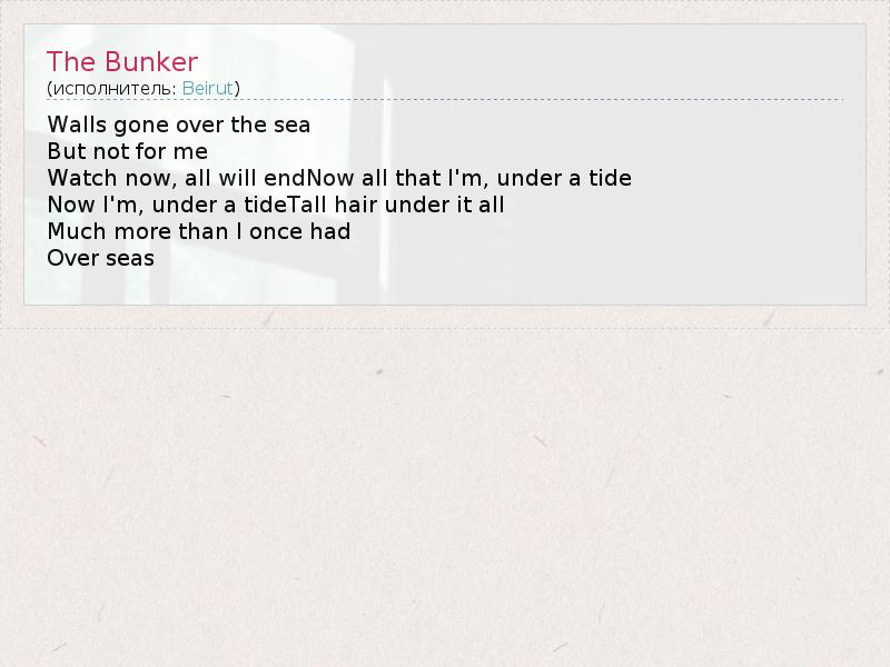 А как ты думаешь, о чем песня "The Bunker" ?