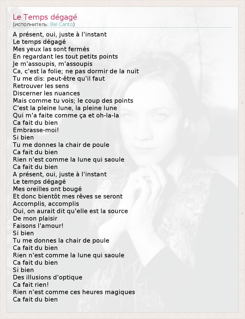 А как ты думаешь, о чем песня "Le Temps dégagé" ?