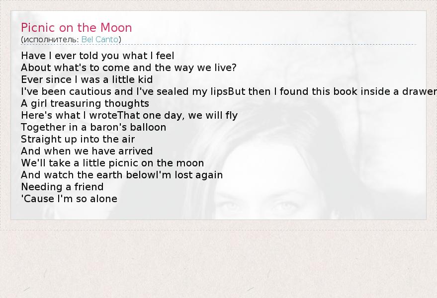 А как ты думаешь, о чем песня "Picnic on the Moon" ?