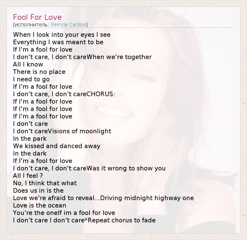 А как ты думаешь, о чем песня "Fool For Love" ?