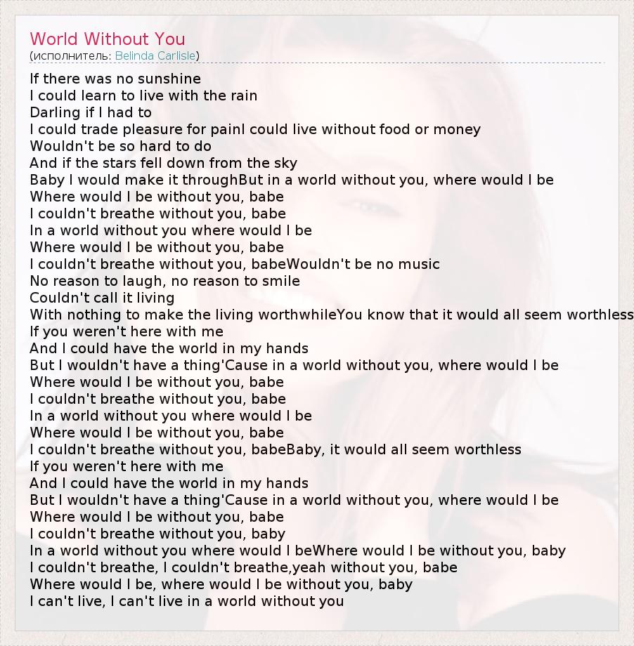 But I wouldn't have a thing'Cause in a world without you, where would I be