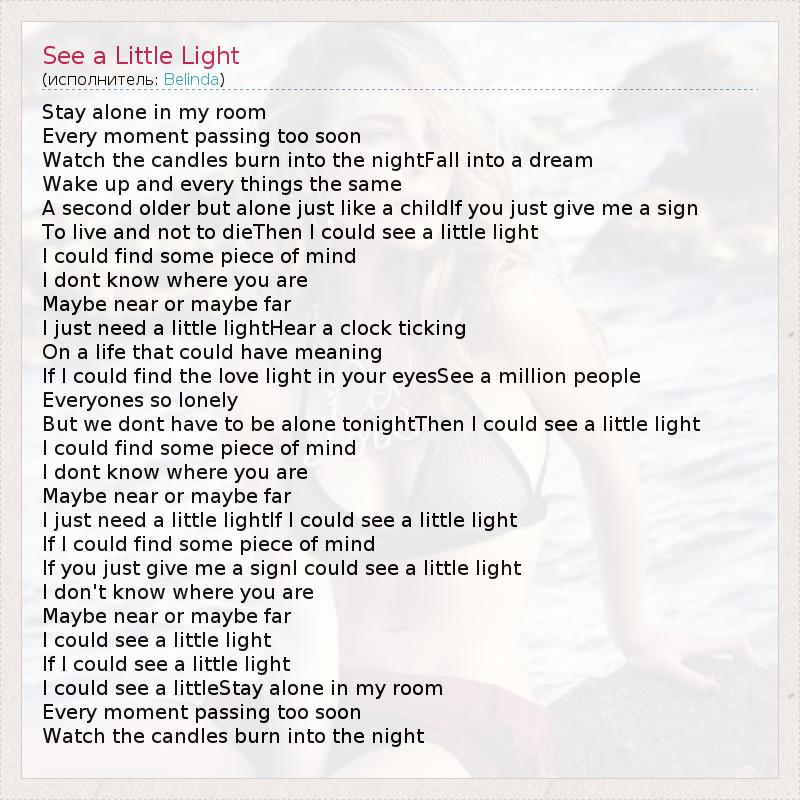 А как ты думаешь, о чем песня "See a Little Light" ?