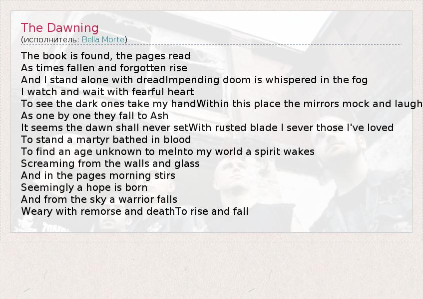 It seems the dawn shall never setWith rusted blade I sever those I've loved