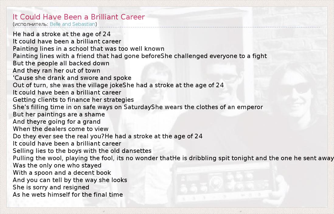 ГлавнаяИсполнителиBelle and SebastianIt Could Have Been a Brilliant Career