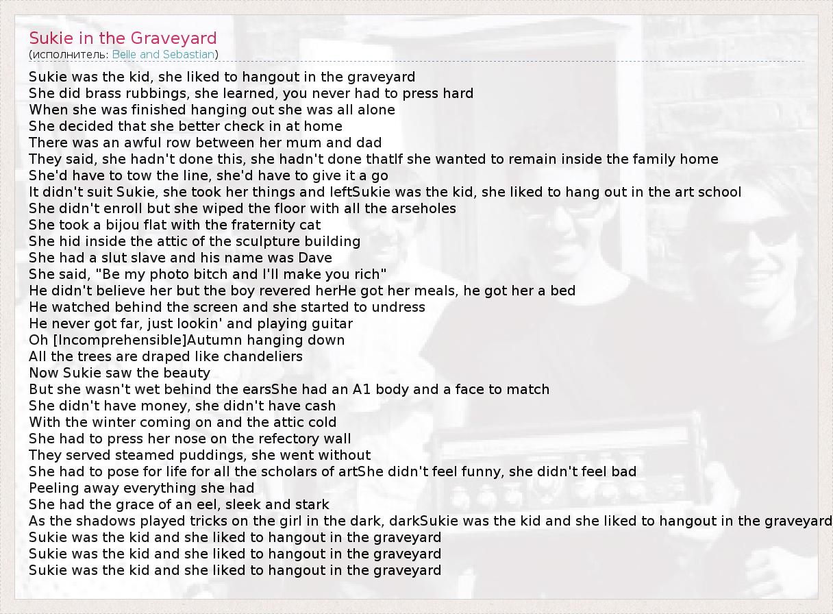 А как ты думаешь, о чем песня "Sukie in the Graveyard" ?