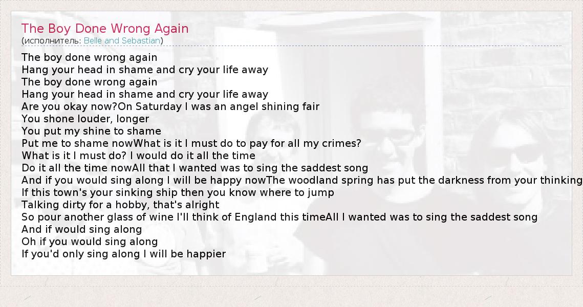 А как ты думаешь, о чем песня "The Boy Done Wrong Again" ?