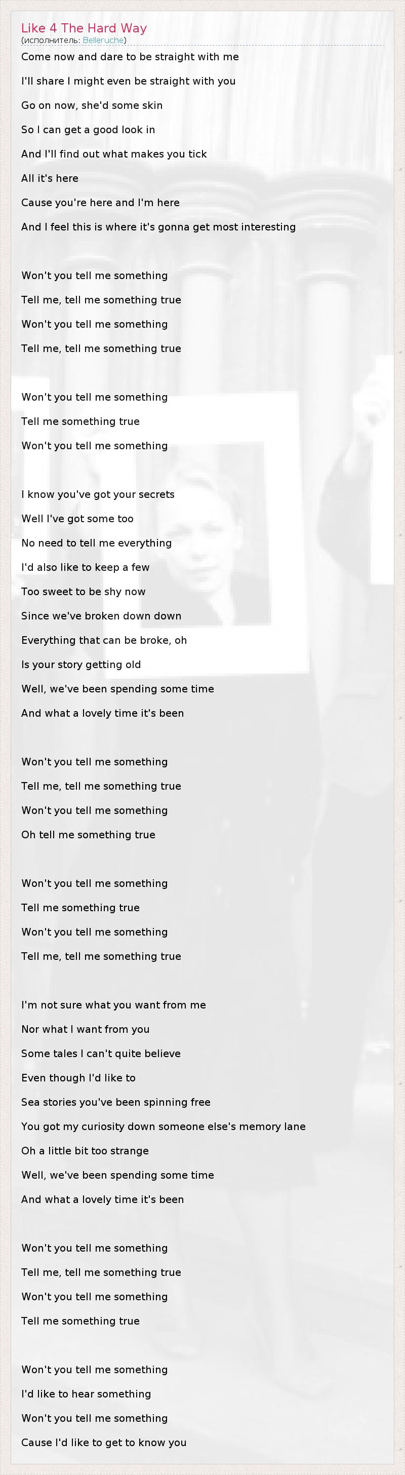 А как ты думаешь, о чем песня "Like 4 The Hard Way" ?