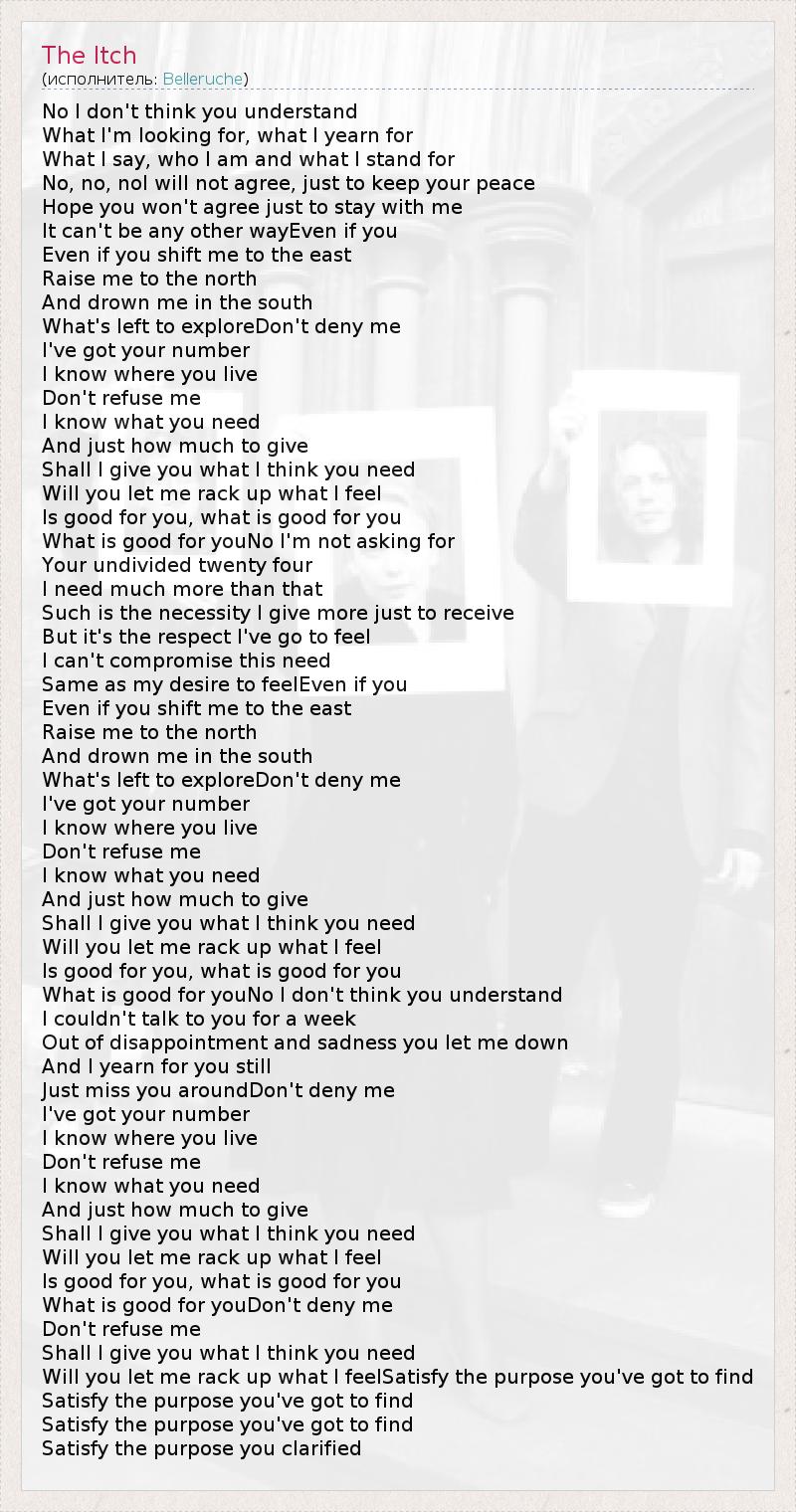 Will you let me rack up what I feelSatisfy the purpose you've got to find