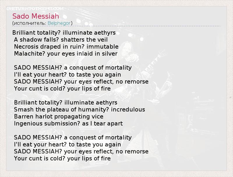 А как ты думаешь, о чем песня "Sado Messiah" ?
