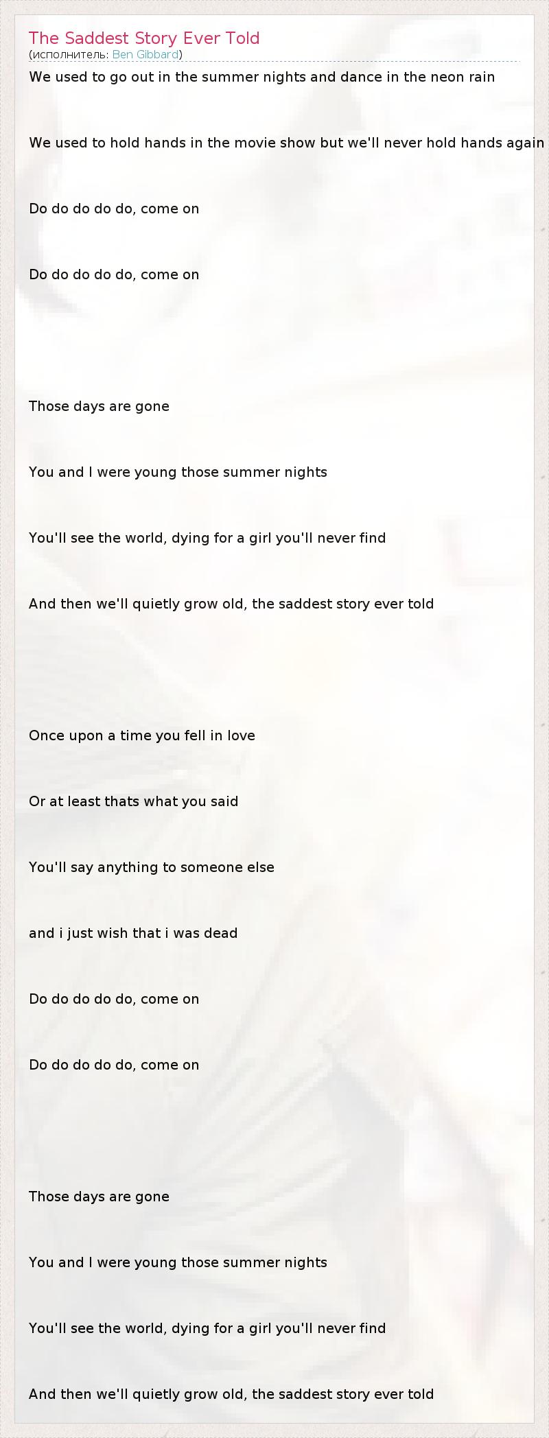 А как ты думаешь, о чем песня "The Saddest Story Ever Told" ?