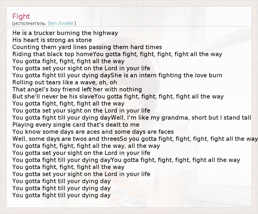 А как ты думаешь, о чем песня "Fight" ?