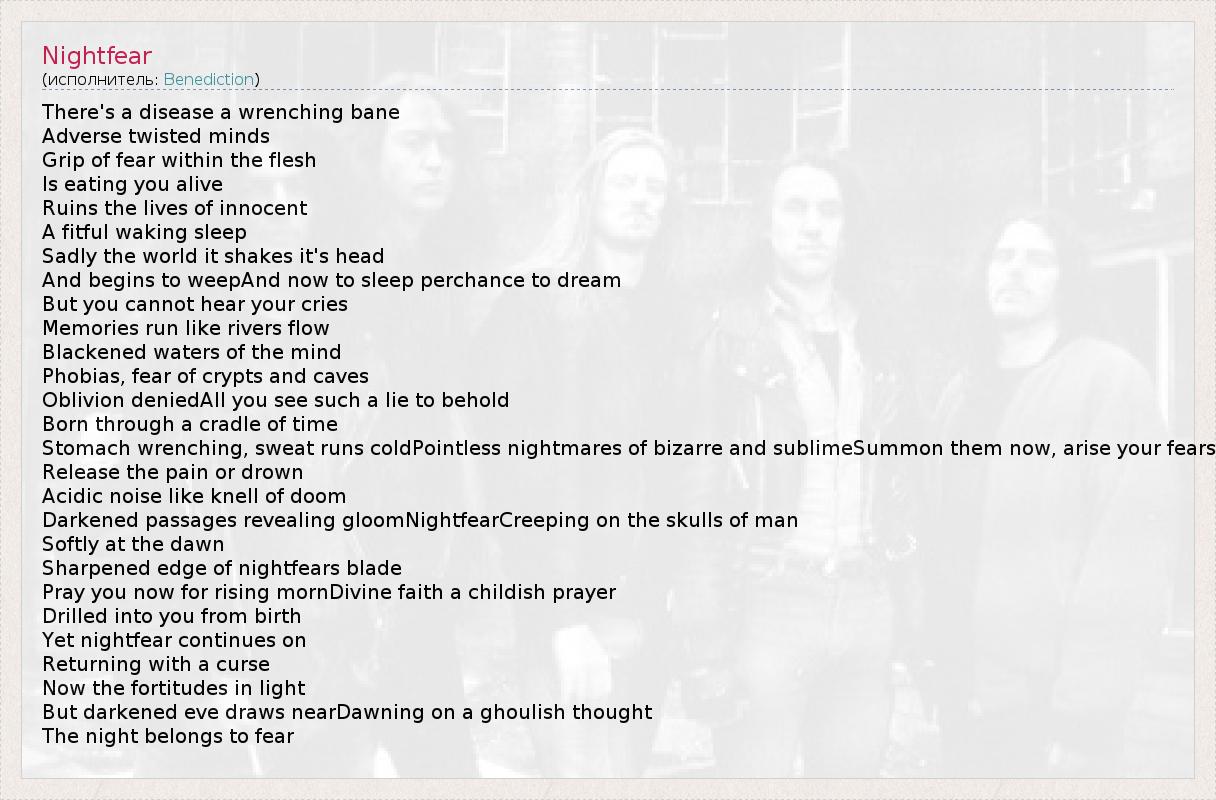 Stomach wrenching, sweat runs coldPointless nightmares of bizarre and sublimeSummon them now, arise your fears