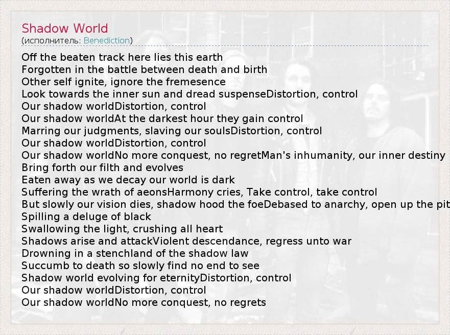 А как ты думаешь, о чем песня "Shadow World" ?